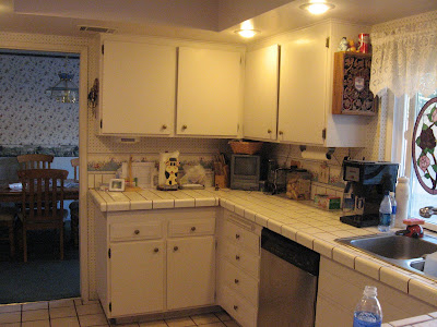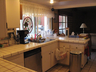 The kitchen remodel is underway. We're committed now and there's no going back. For those who don't know, we live in a house built in 1969, which we like to call "The House of Unlimited Potential". (But it's withstood two big earthquakes so that's good!) Since my wonderful hubby is the construction type, we do most all the work ourselves, although we did sub out the new roof a few years ago. Something was mentioned about a certain someone, (me), who has the tendency to be clumsy and the family's desire that I not fall off the second story roof. Hmm...go figure...(I say innocently as I nurse my plethora of bumps and bruises from smacking myself in the leg with the cabinets and lumber that I'm hauling around....)